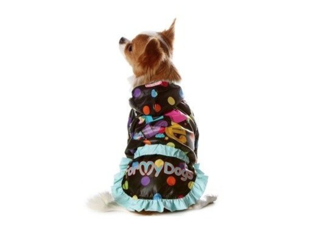 Černá pláštěnka s puntíky se sukničkou pro psy